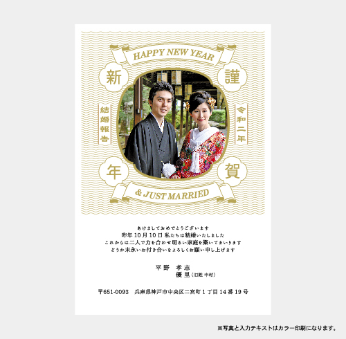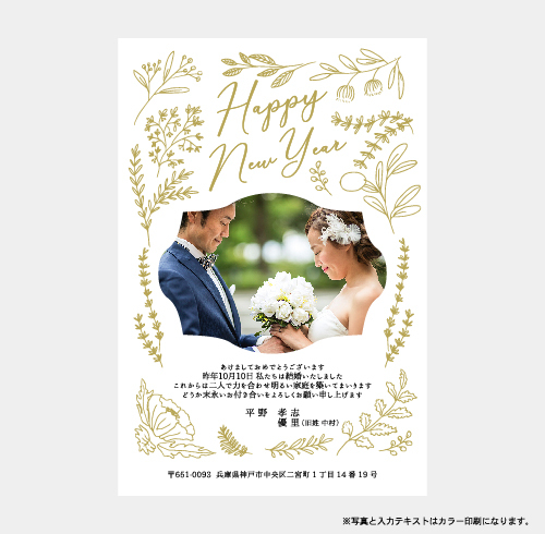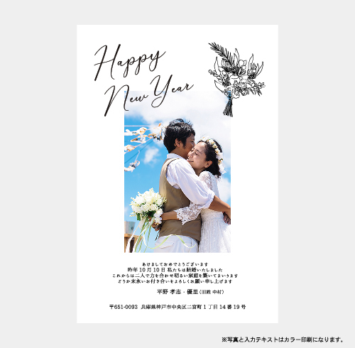 - 結婚報告年賀状の文章テンプレートをご用意しております。文章の変更などがある場合はご相談ください。