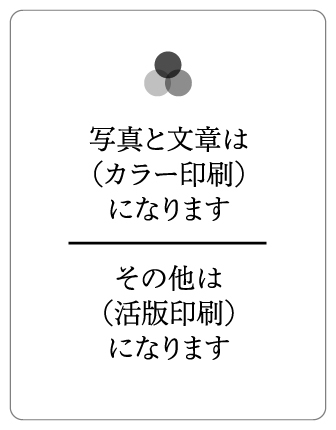 - 写真と入力テキストはカラー印刷、それ以外は活版印刷になります。