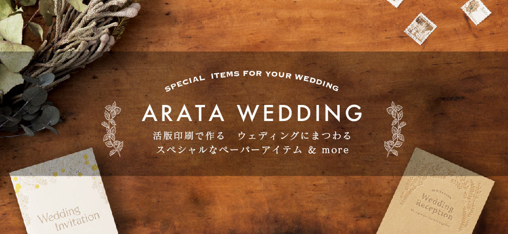 「もっと気軽に活版印刷のペーパーアイテムを作りたい」そんな声から生まれた、少部数から簡単に頼めるアラタウェディングです。