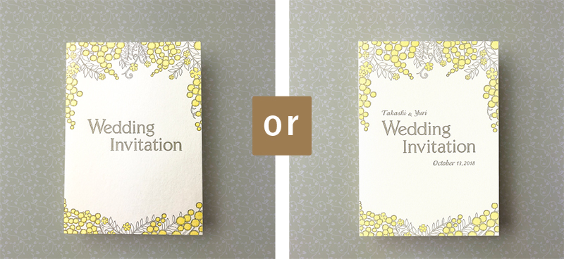 例えば「12か月のお花」では、お花のイラストはそのまま共通ですが、アラタウェディングはシンプルな表紙、啓文社ウエディングの方にはおふたりのお名前と挙式日をお入れしています。ほかのシリーズでも、メインの活版印刷は維持しつつも、一部分通常印刷に変えたり、デザインを変更したりしています。