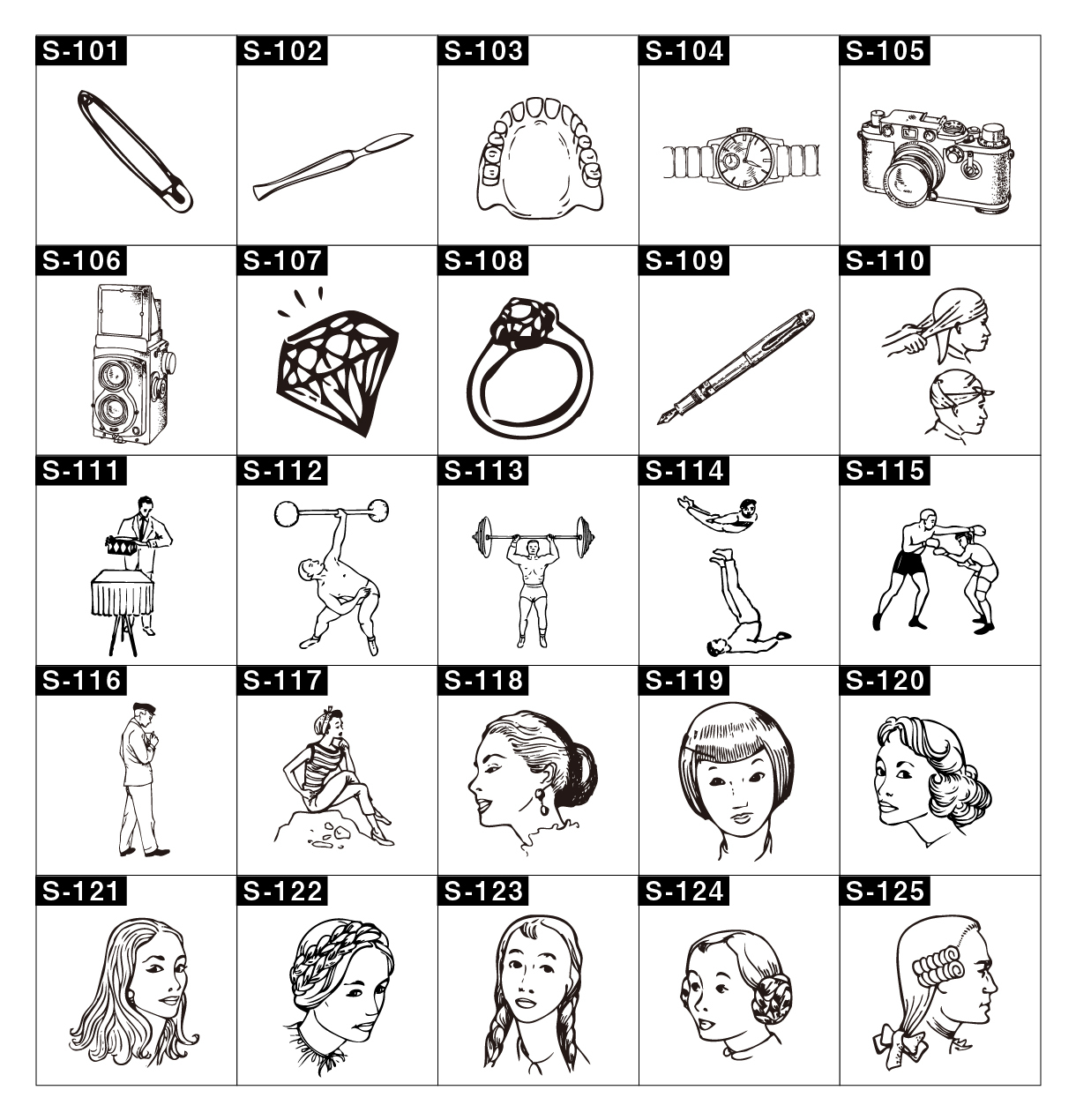 イラスト番号は、左上のSから始まる番号をお書きください。