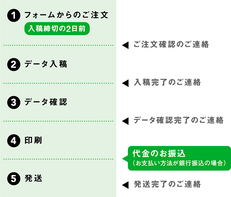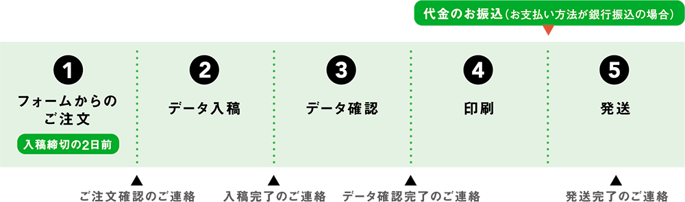 • キャンセルについては、データ入稿のお客様は入稿前に、デザイン年賀状は校正確認のご連絡前までに、キャンセルの旨をご連絡ください。