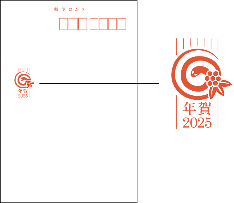 宛名面をご自身のデザインで印刷希望の場合は+5,000円(税別)で印刷可能です。赤1色で制作したデータを併せて入稿してください。