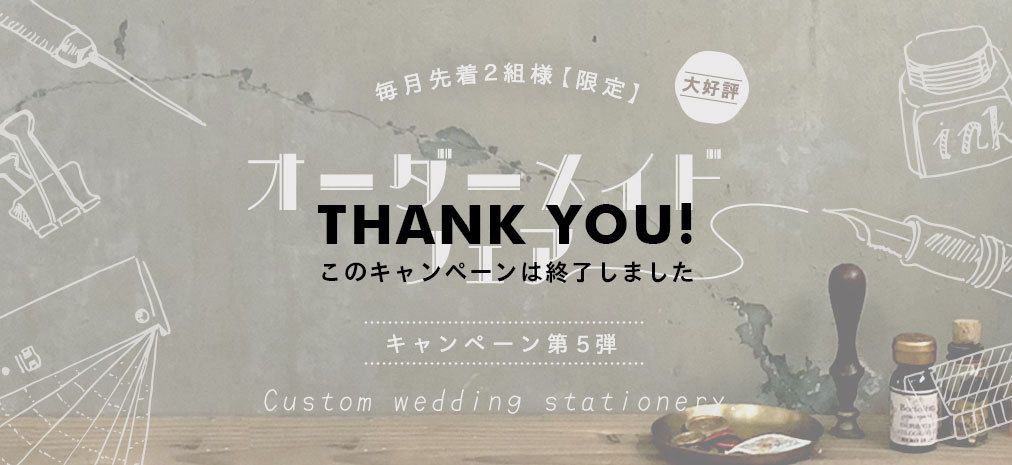 活版印刷でオリジナルのペーパーアイテムなんて高いかなぁ?イメージはあるけどどうしたらいいか分からない…と諦めていた方に!2月から4月末までの間、各月先着2組限定で、あなただけのオリジナル招待状や席次表がデザイン費OFFでお得に作れるキャンペーンです。