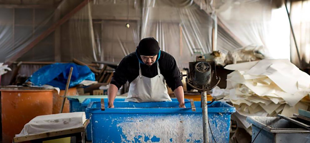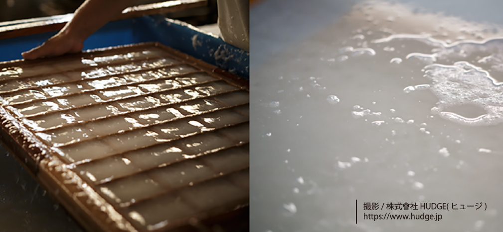 ユネスコの無形文化遺産に登録され近年再度注目された、日本の手漉き和紙の技法と技術。人の手で1枚ずつ丁寧に漉きあげた和紙はふんわりとしたやさしい手触りを味わうことができます。