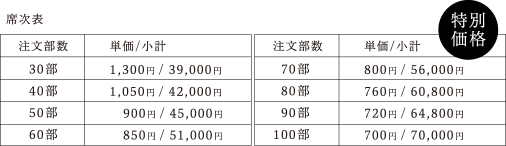 ※ご注文部数のみのお届けとなります。必要な場合は予備を含めた部数をご注文ください。
