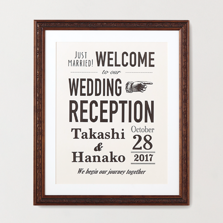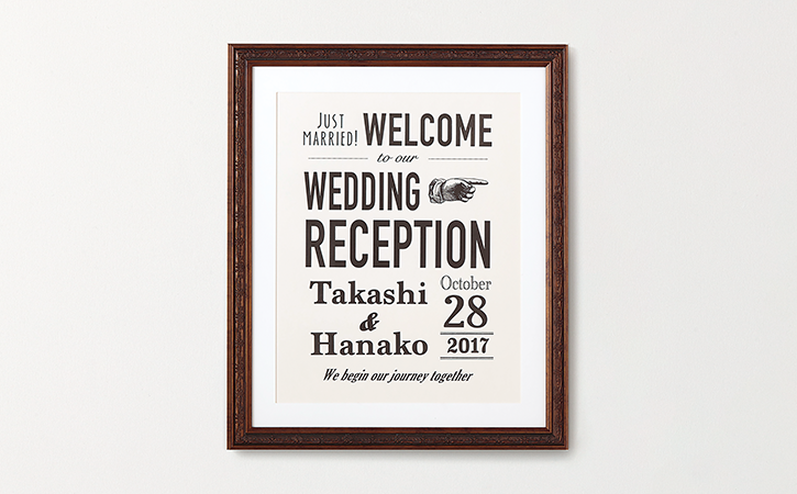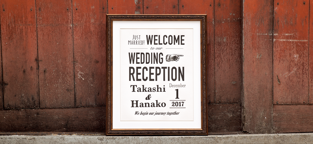 ビンテージ感のあるイギリス風の伝統的な木版画を模したウェルカムボードです。力強い文字組がベーシックなデザインをよりお洒落に引き立てます。