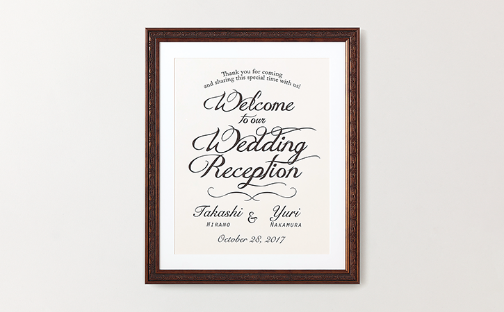 シンプルに上品さを演出したい方にオススメの活版印刷のウェルカムボードです。タイポグラフィータイプの存在感のあるデザインはどんなシチュエーションにも使えるのが魅力的。3種類のバリエーションからあなたのお好みのものを。