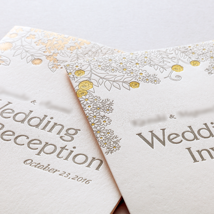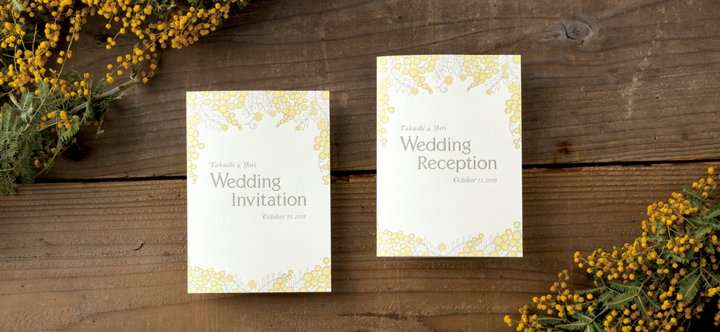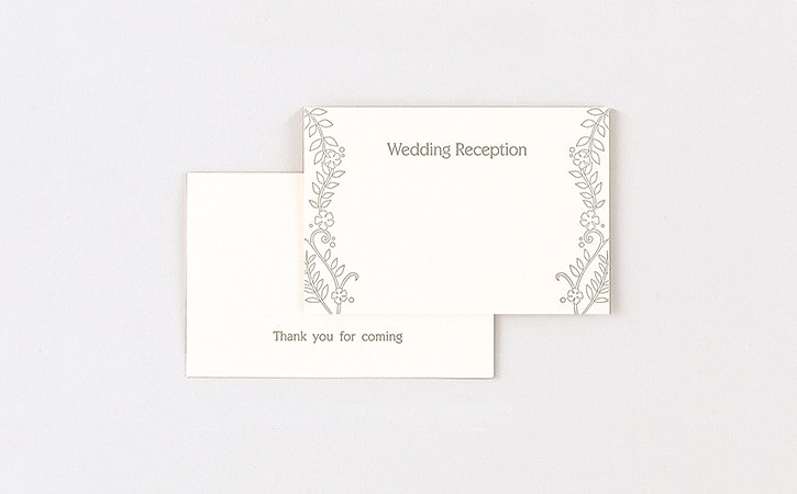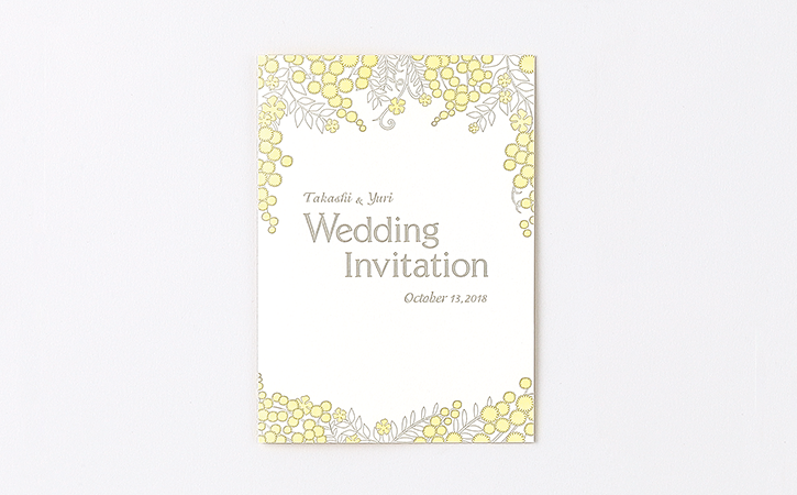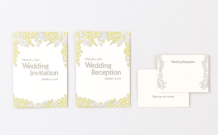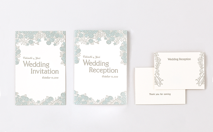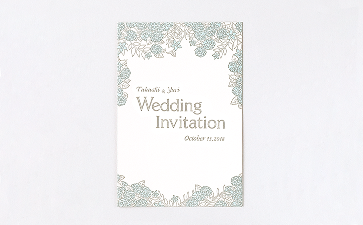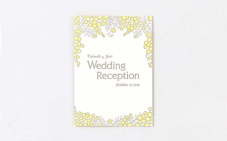 柔らかい2色づかいの活版印刷がお花たちを可憐に表現します。結婚式の日取りや誕生月のお花など、お好きなシチュエーションでお好きなお花のデザインをお選びいただけます。