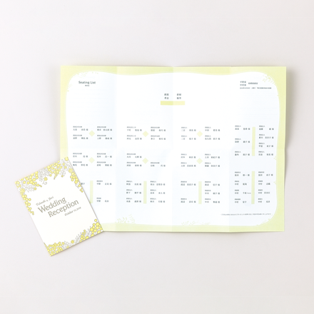 コンパクトなサイズの席次表はパタパタと折りたためる仕様。ゲストのお名前が小さくなる心配もありませんので、大人数の挙式の方にもおすすめです。