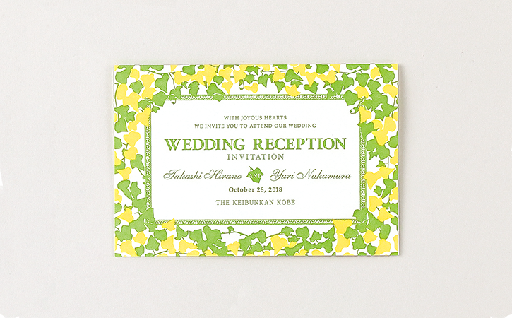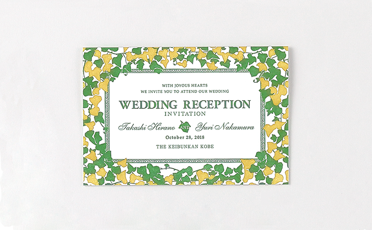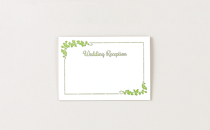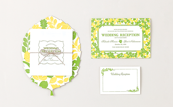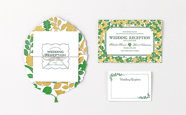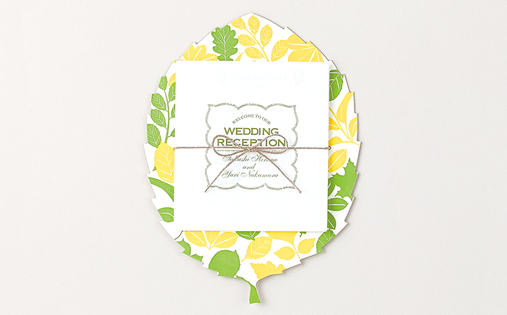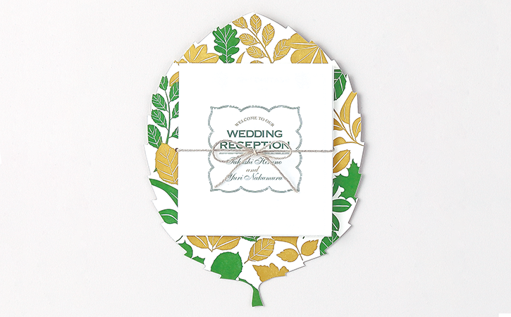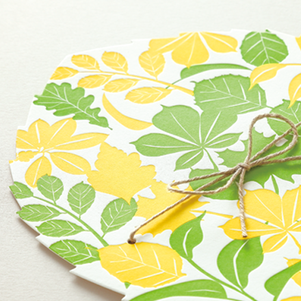 葉のかたちにカットされたレタープレスが特別な気分に。