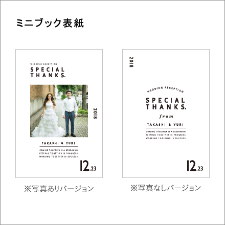 前撮り写真などを使用できる表紙の他に、文字のみの表紙もご用意しています。